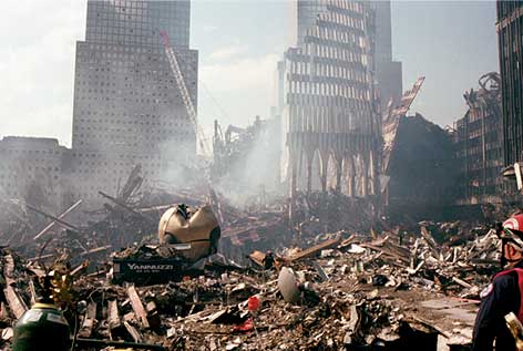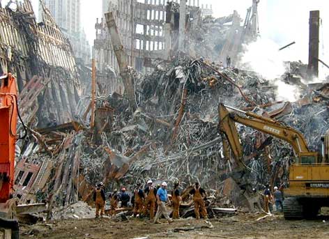Here are some pictures taken of ground zero, after the two towers collapsed. It looks like any other normal building site, but of course is in effect, a mass grave.