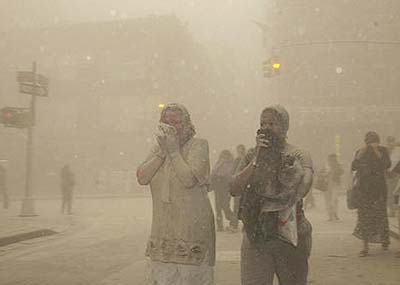 The people try to escape the pyroclastic type colud of dust and debris when the first tower fell. |